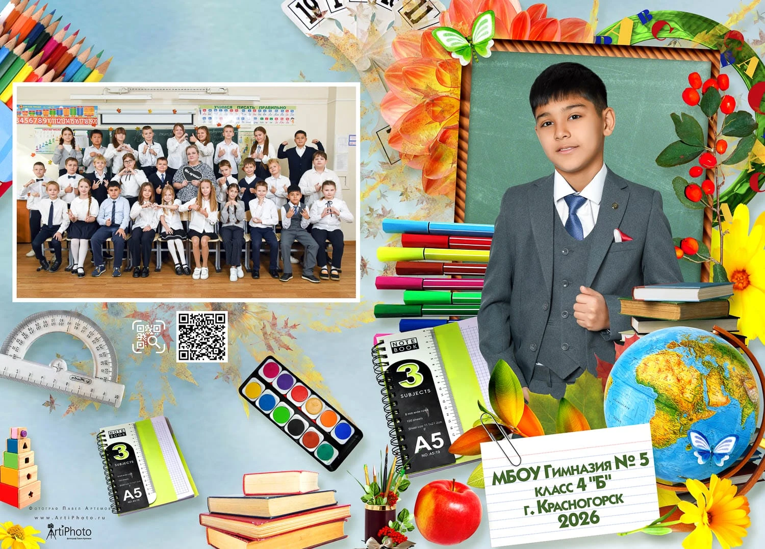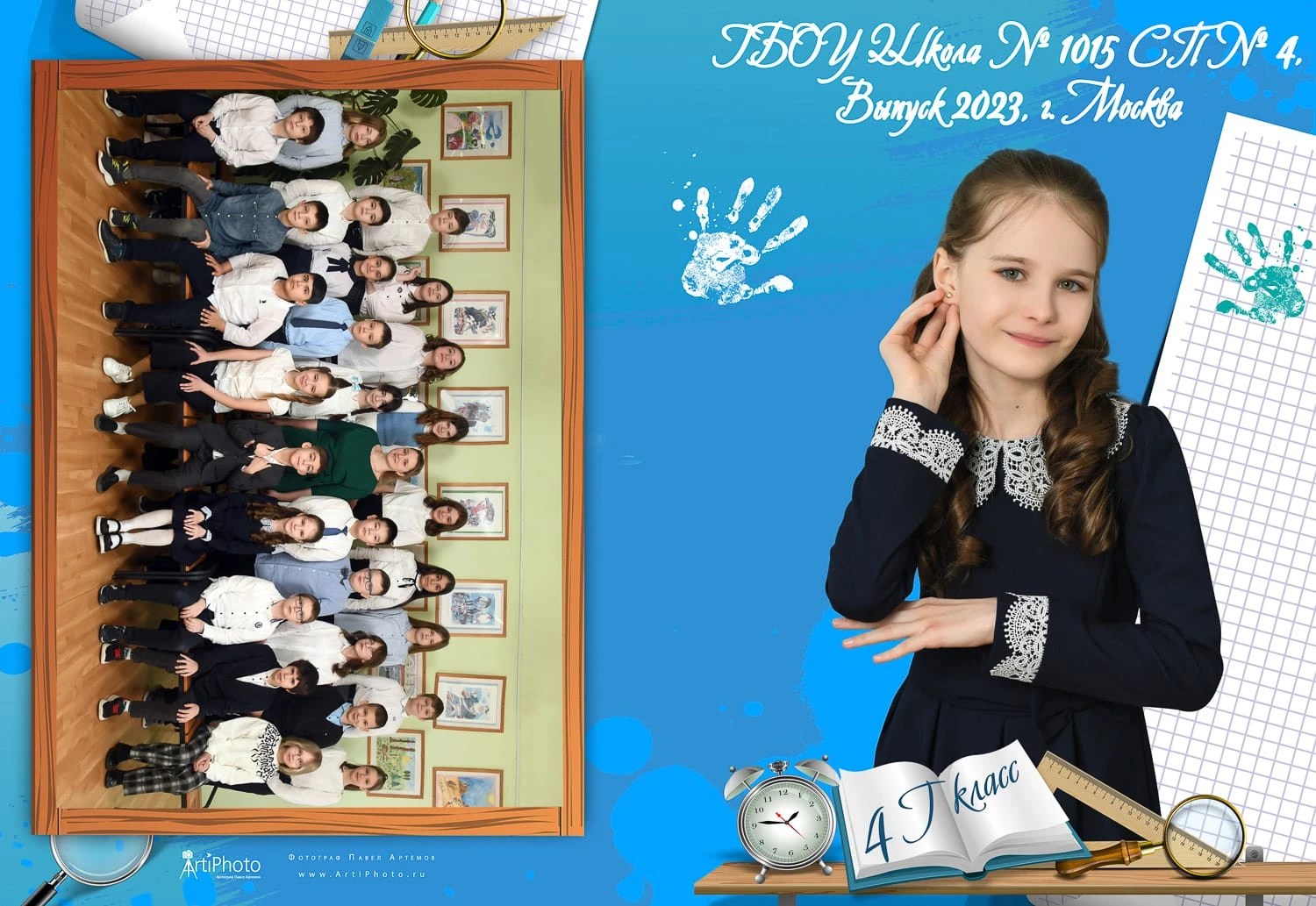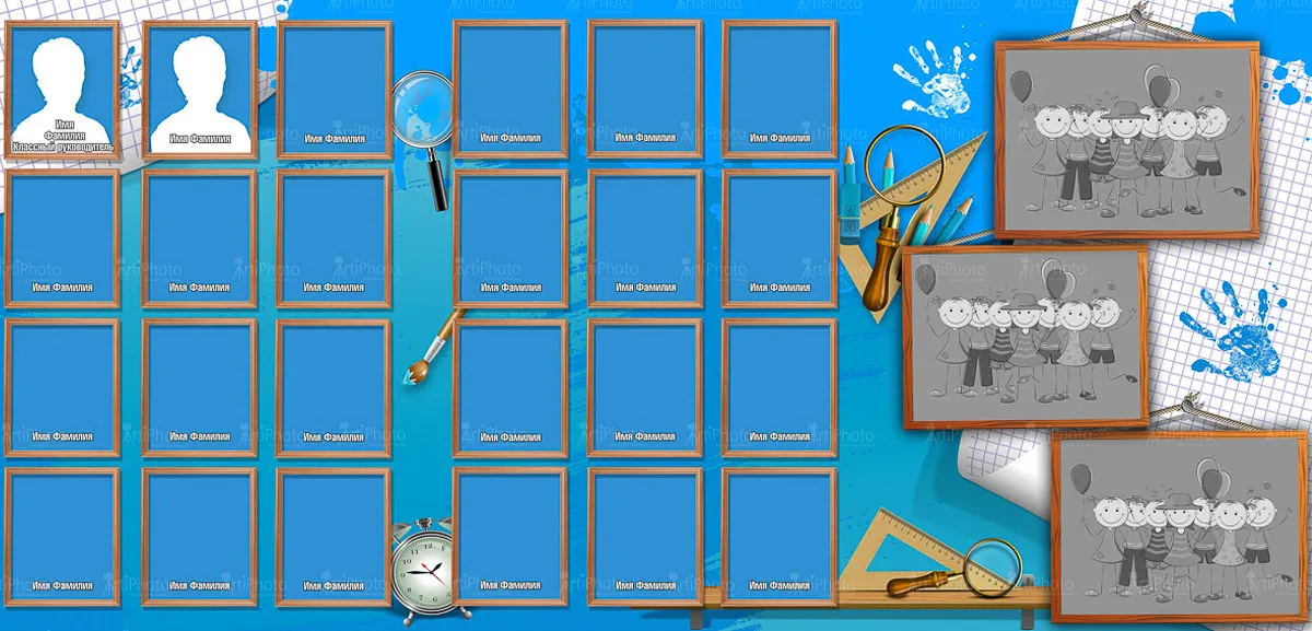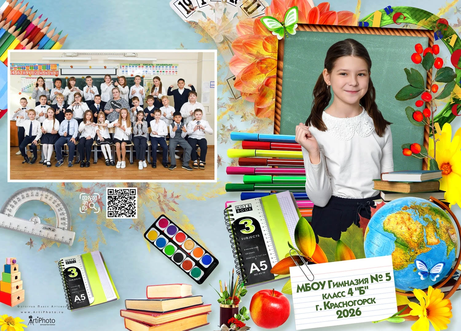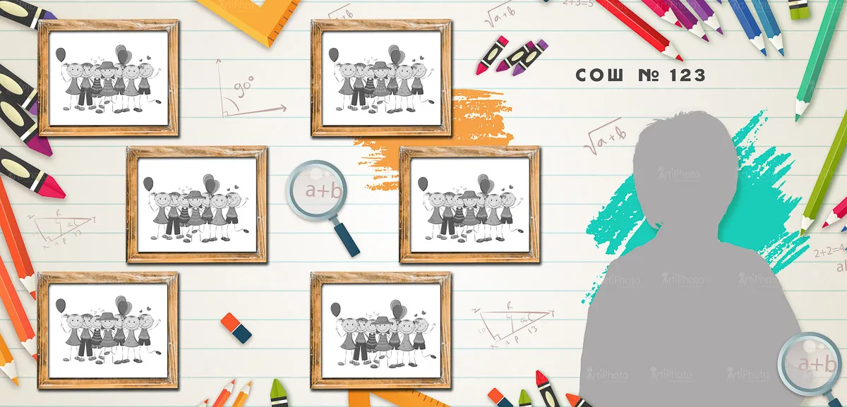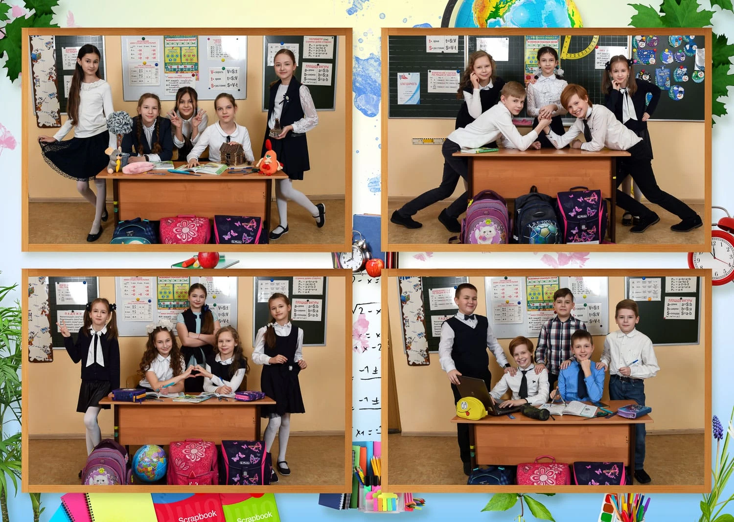 Я создаю папки для 1-4 классов с живыми фотографиями начальной школы, групповыми фото и портретами учеников — теплые школьные воспоминания для родителей и классного руководителя.
