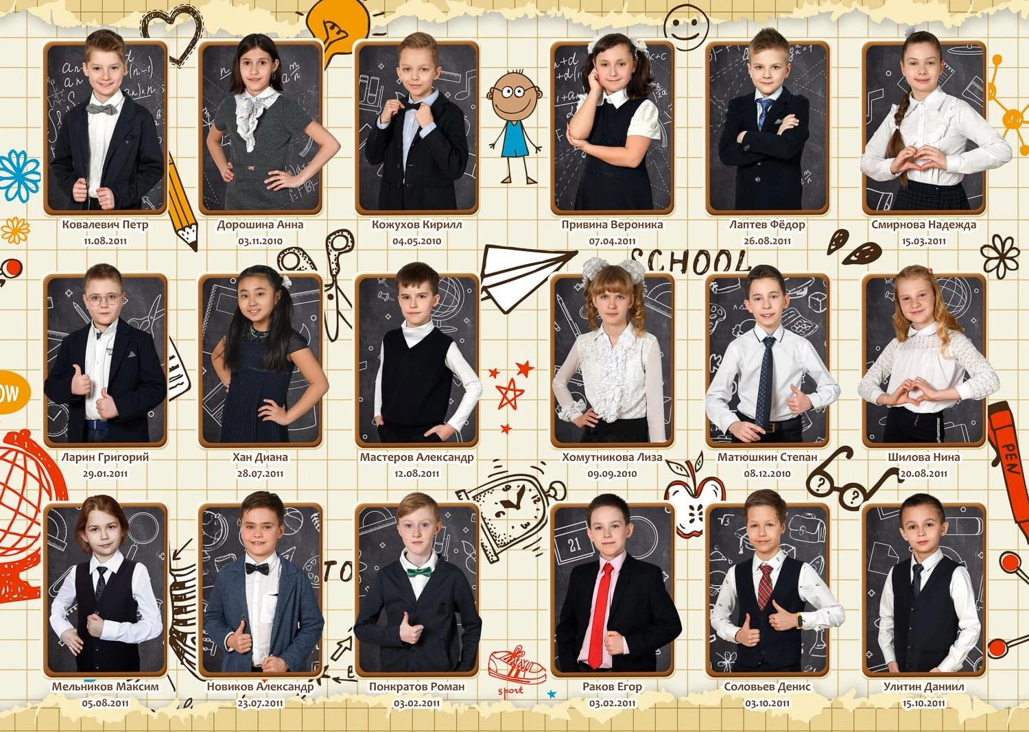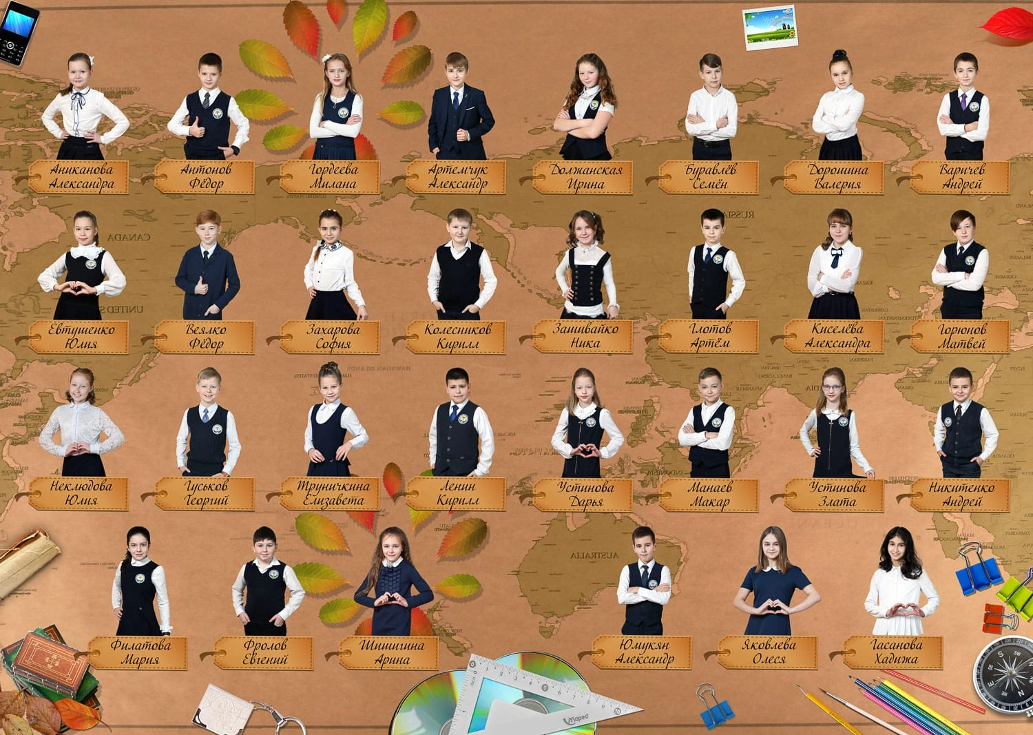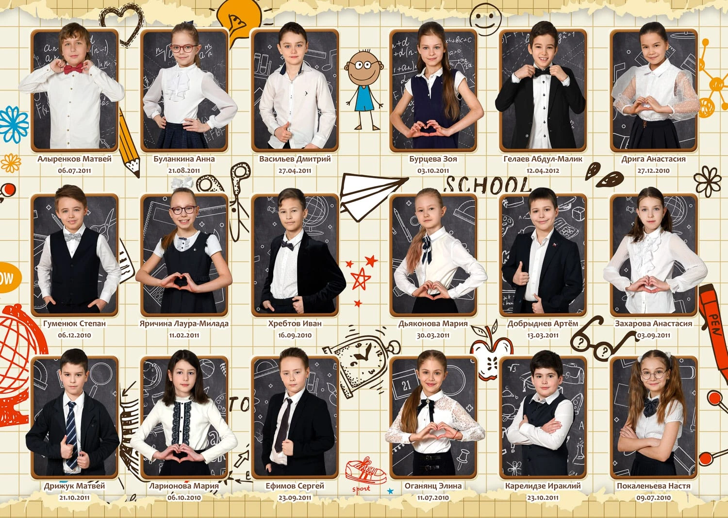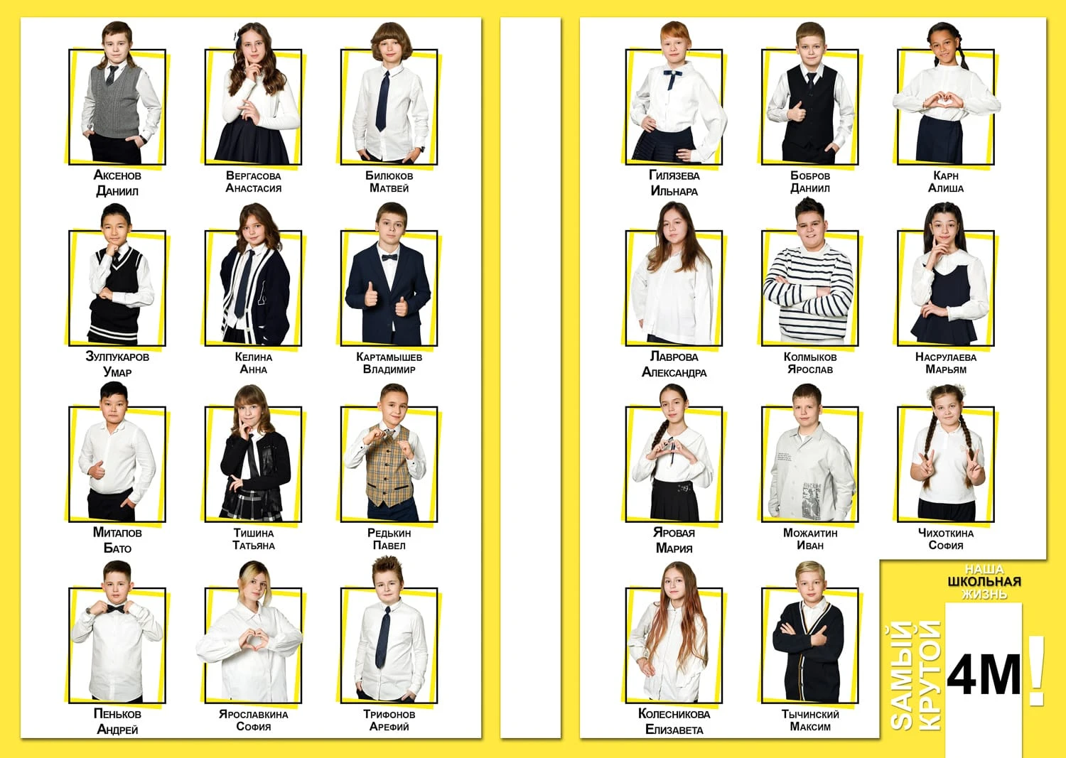 Я создаю папки для 1-4 классов с живыми фотографиями начальной школы, групповыми фото и портретами учеников — теплые школьные воспоминания для родителей и классного руководителя.
