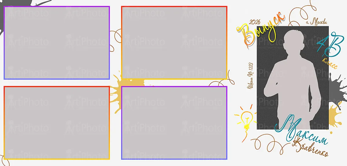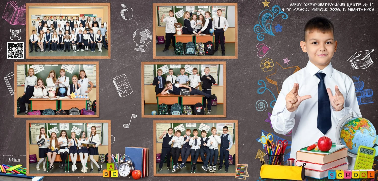 Выпускные альбомы в начальной школе — это история о первых друзьях, улыбках и лёгких моментах, которые хочется сохранить. Я создаю тёплые, яркие и современные дизайны альбомов для 1-4 классов и выпускные папки для 4 класса, чтобы каждый разворот передавал атмосферу детства с оживающими фото на групповых и общих фотографиях, портретах с учениками.