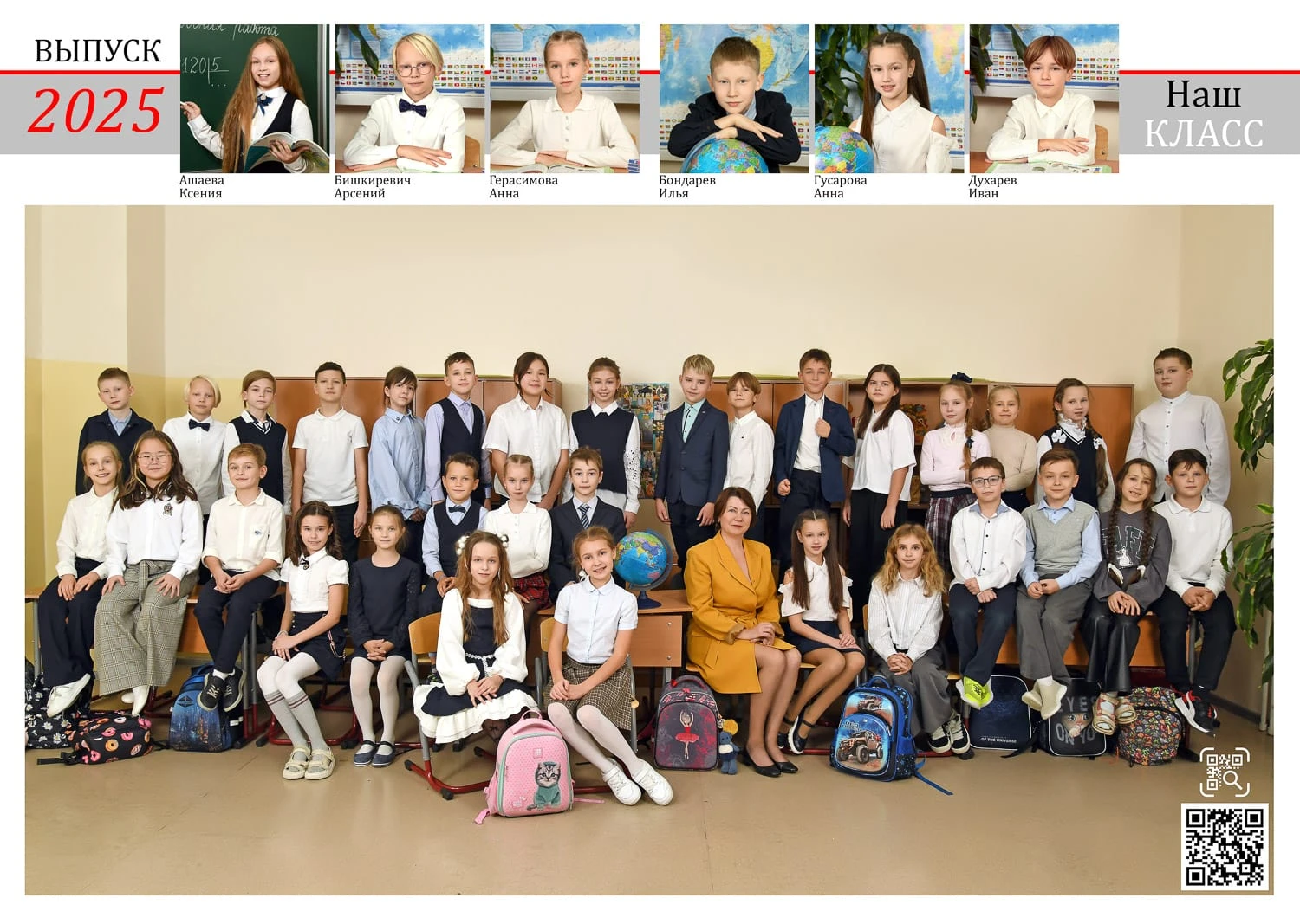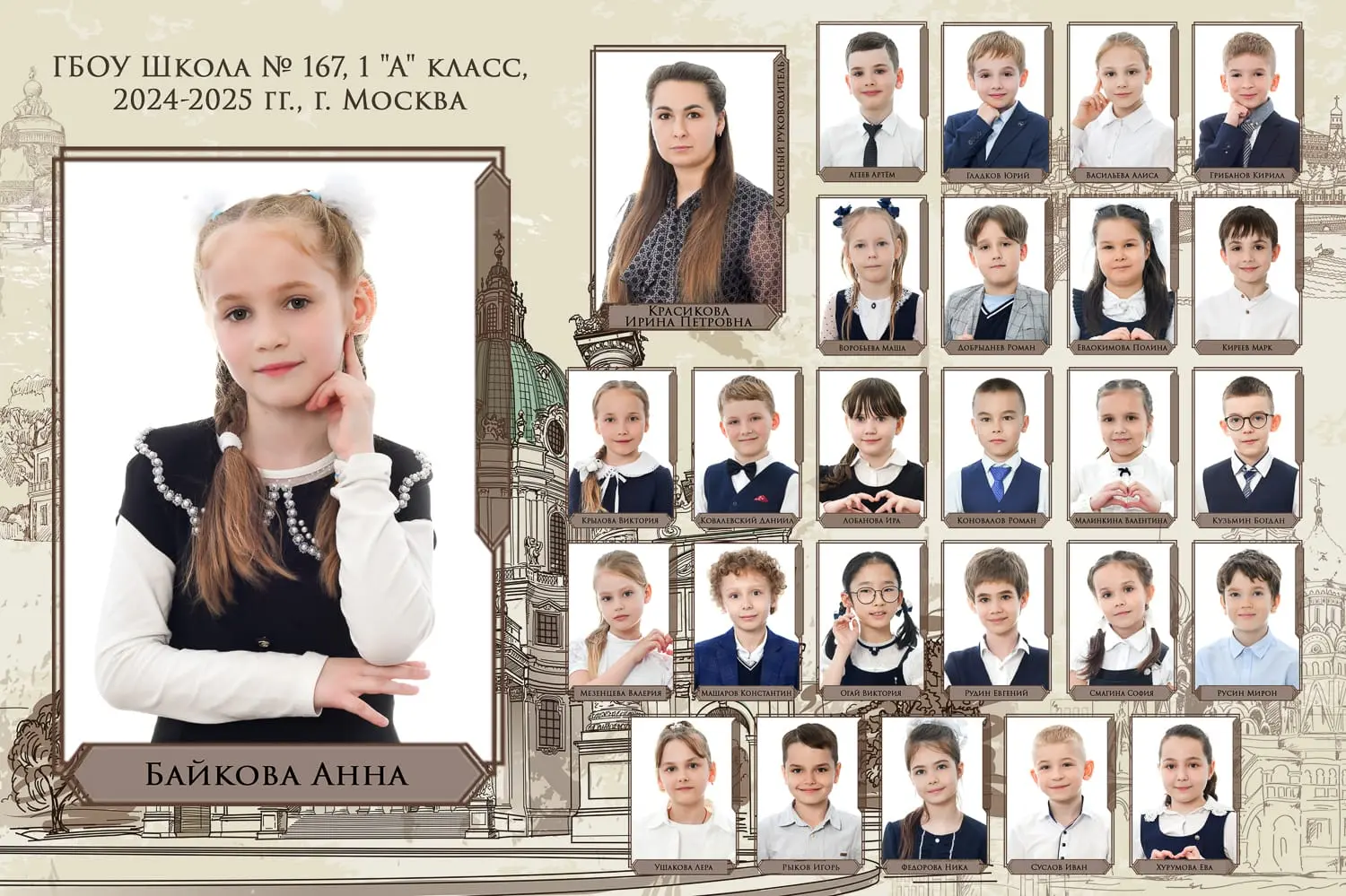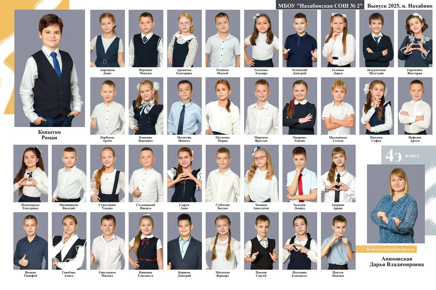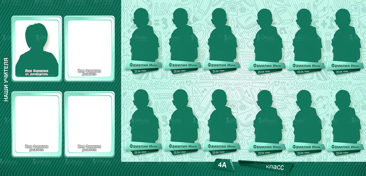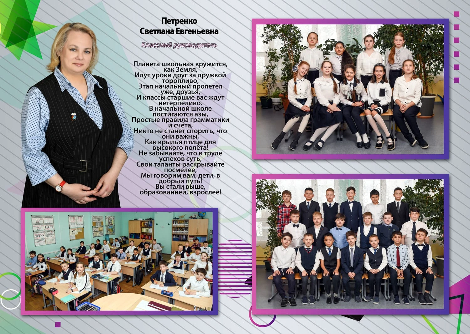 Портрет ребенка слева, справа все дети и учителя.