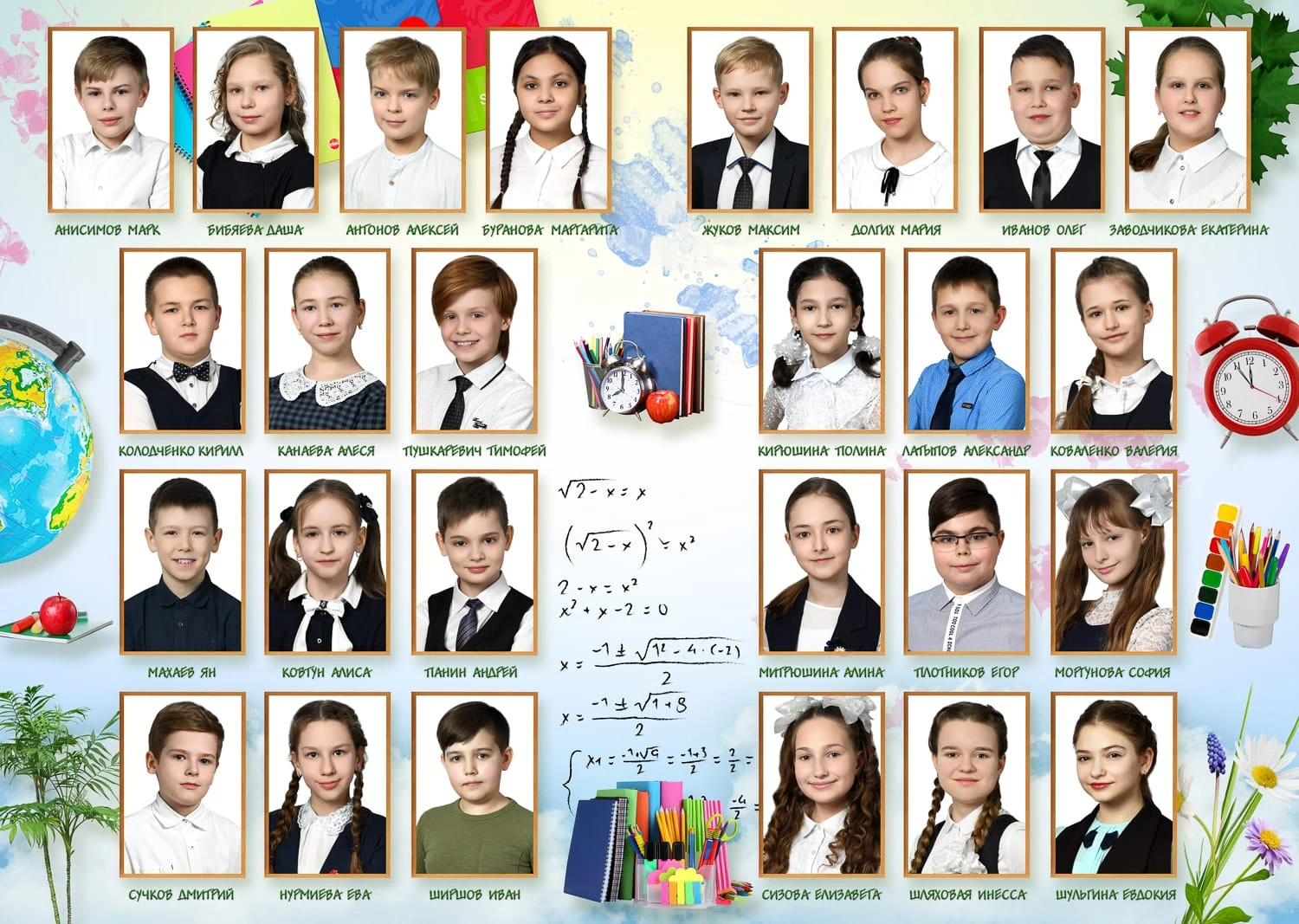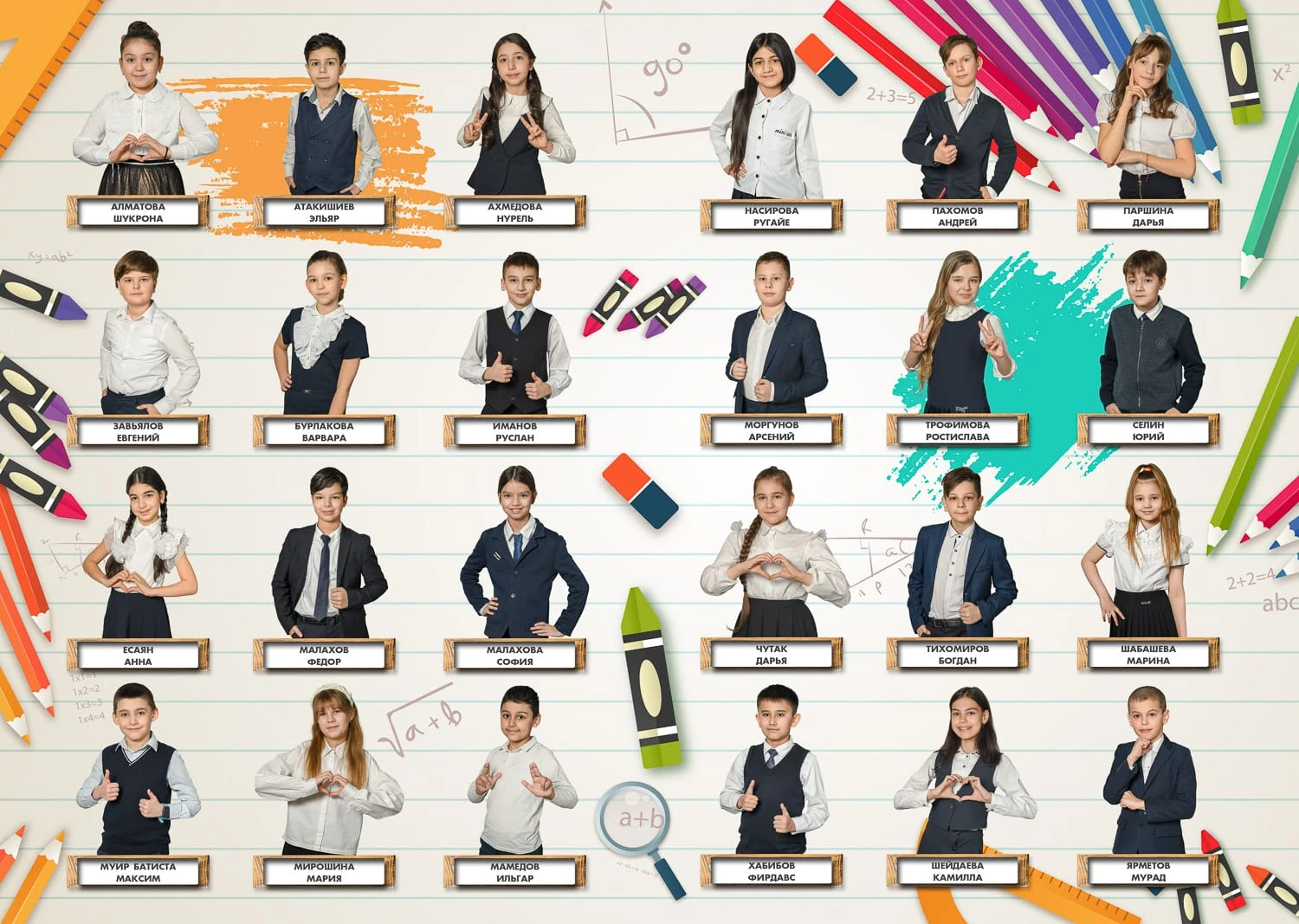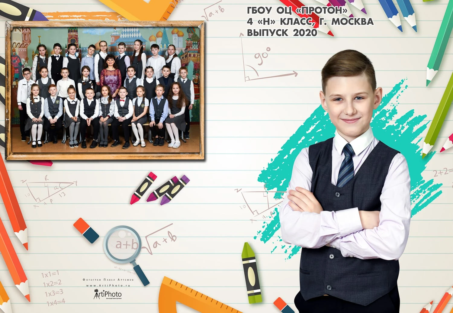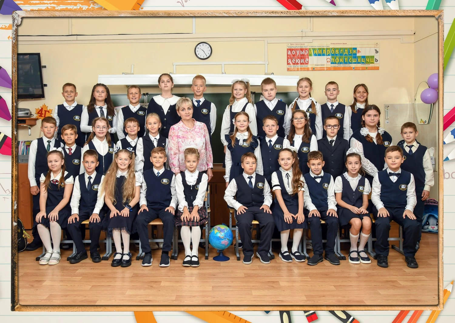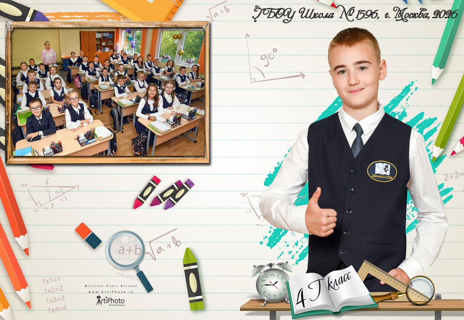 Фотография делается в классе/в актовом зале или на улице.