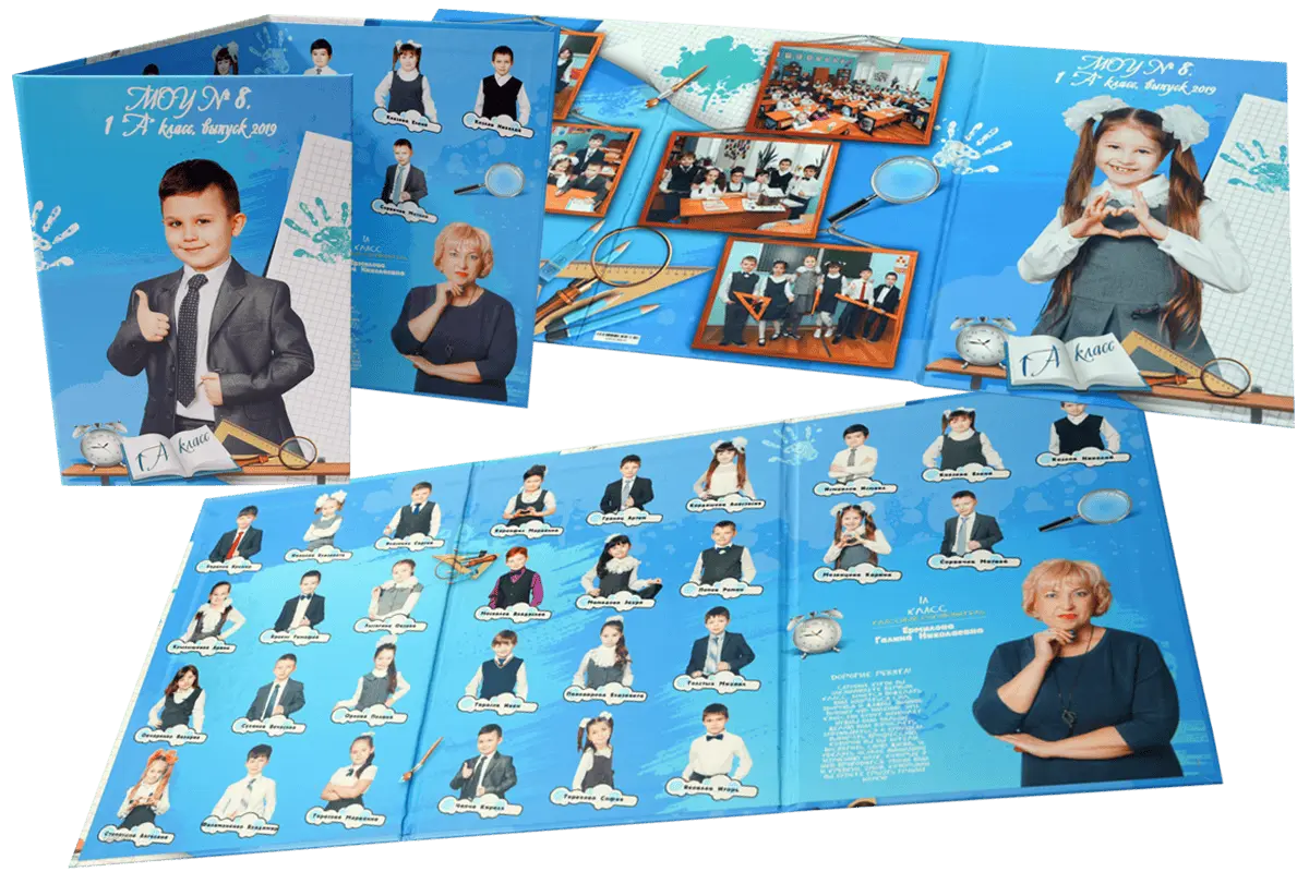 Персональные альбомы для начальной школы сохраняют самые важные моменты первых школьных лет: индивидуальная съёмка школьников проводится с учётом всех пожеланий, а дизайн альбомов начальной школы подбирается индивидуально.