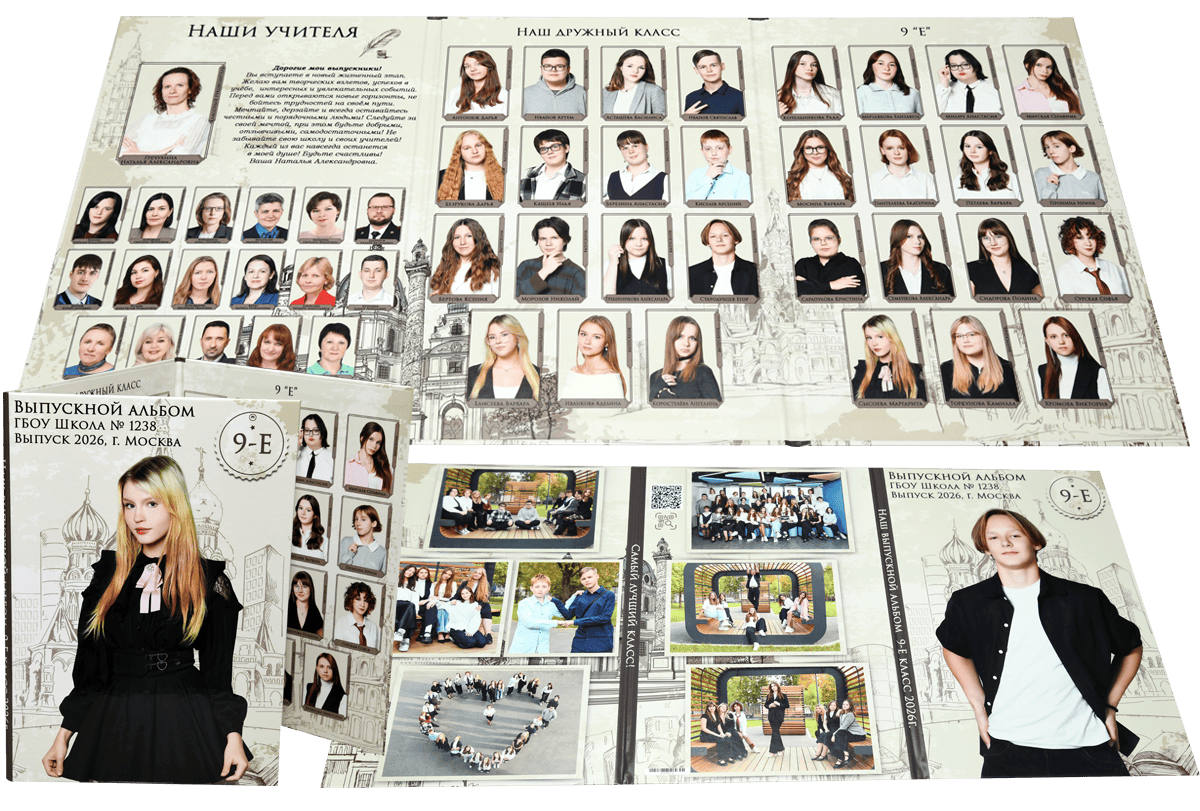 Альбомы для старших классов — это история о последнем школьном годе: класс, друзья, выпускные традиции, кадры перед экзаменами и моменты, которые хочется сохранить.