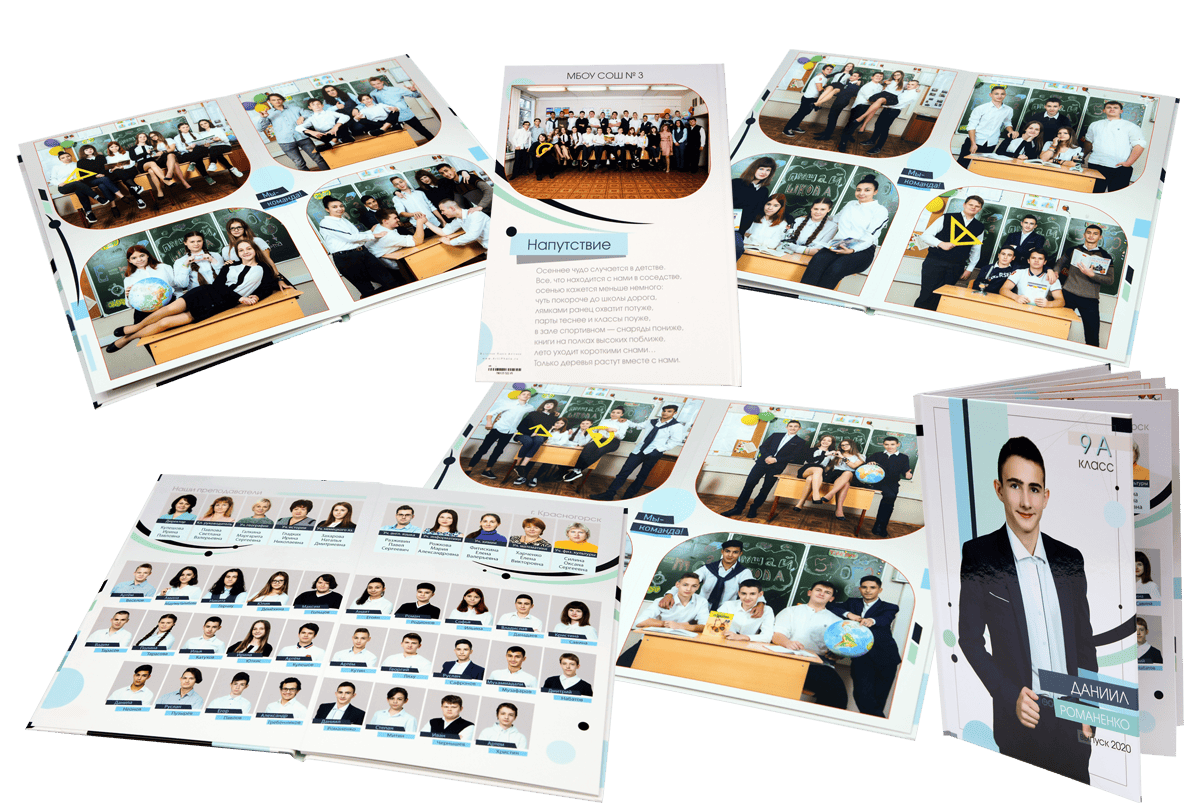 Выпускные альбомы — это лаконичный и стильный формат для выпускников, которые хотят сохранить эмоции года без избыточности: строгий дизайн, яркие цвета и достойное качество.