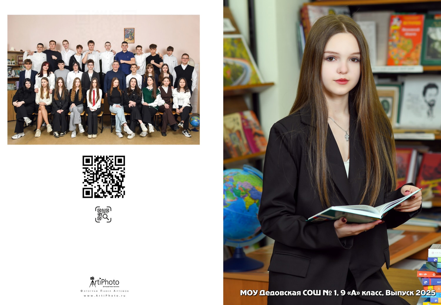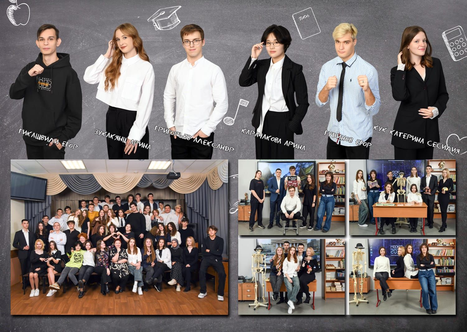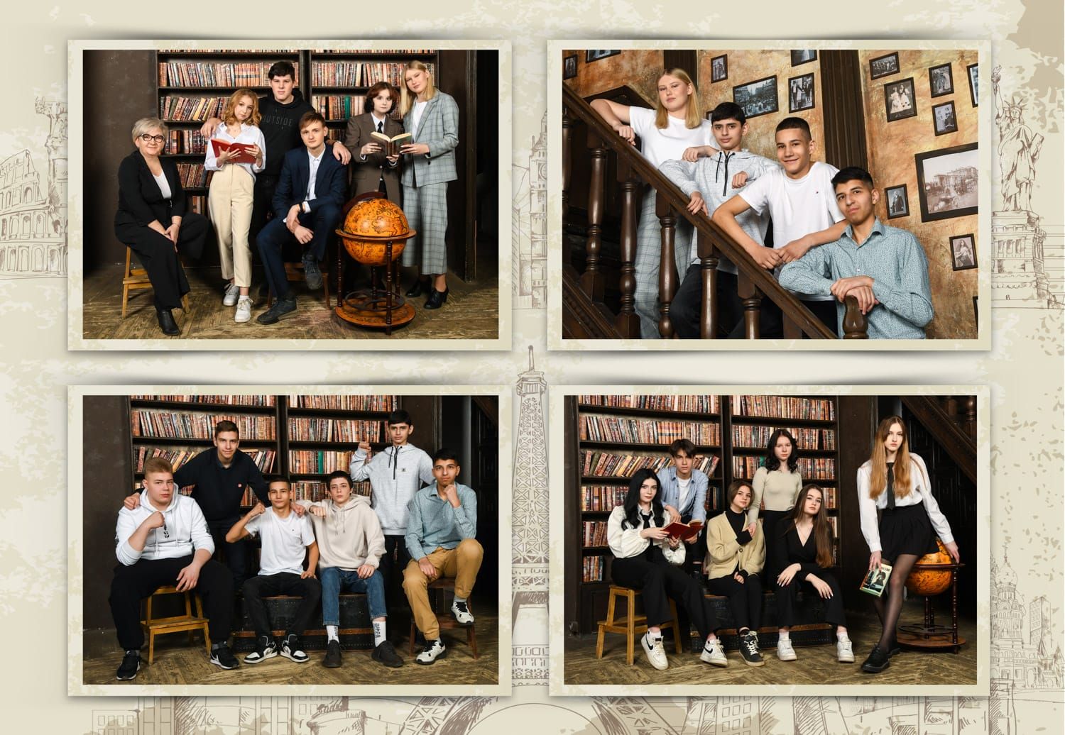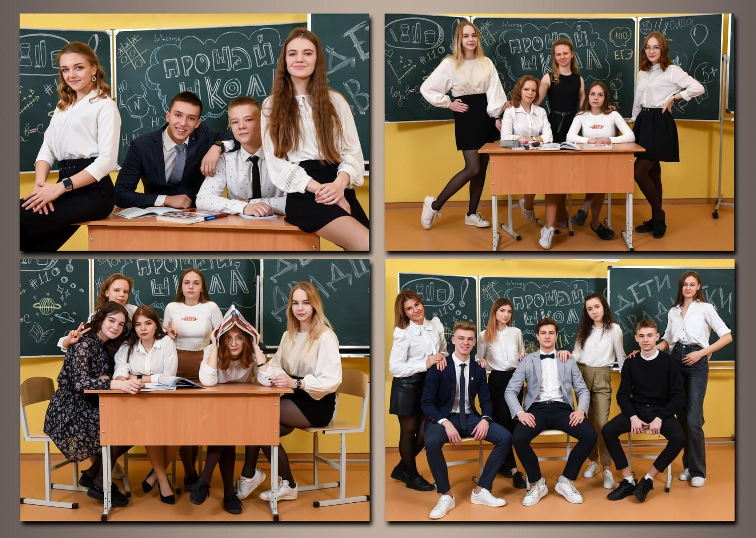 Индивидуальная фотосъемка каждого ученика в классе со студийным освещением.